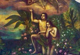 亚当和夏娃吃了禁果后,突然发现自己能分辨善恶,能知道羞耻了。他们意识到自己犯了罪,于是赶紧躲进了无花果树后面。上帝发现了他们的行踪,便问:“你们在哪里?”亚当和夏娃回答说:“我们听到了你的声音,就害怕了,因为我们赤身露体,便用无花果的叶子为自己做了裙子。”